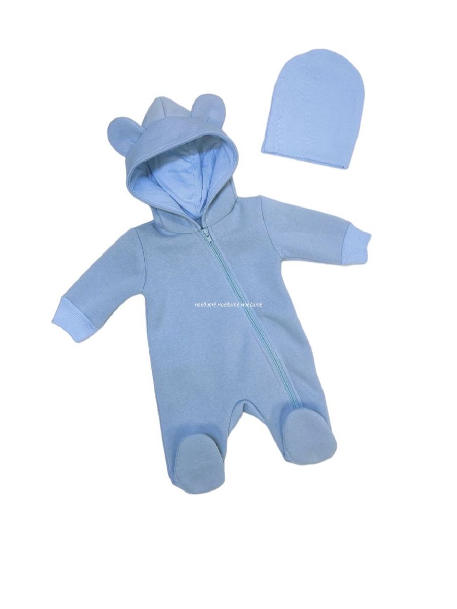 "МоёДитё" комбинезон выполнен из футера с начёсом. Комбинезон с капюшоном на подкладке и декорирован сверху ушками, с закрытыми ножками, рукава на манжетах, спереди косая молния до конца одной ножки. Шапочка из кашкорсе можно одевать как с отворотом, так и без. Очень хорошо тянется.